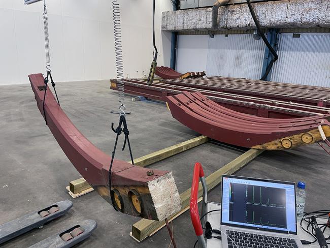 Nästan hundraåriga limträbalkar testas för återbruk